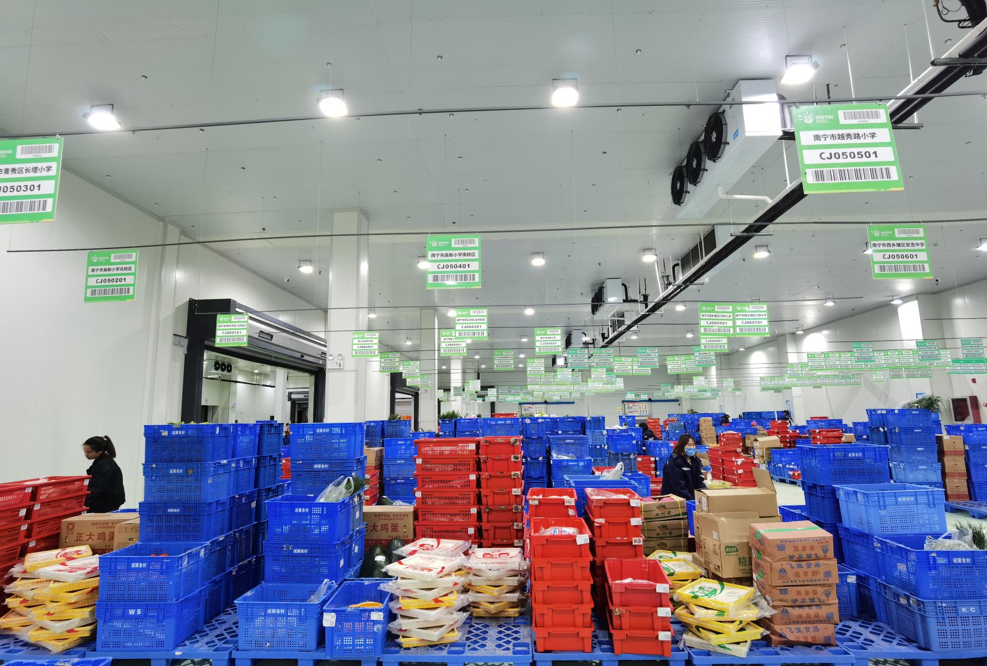 五象配送基地食材分揀完畢準備配送