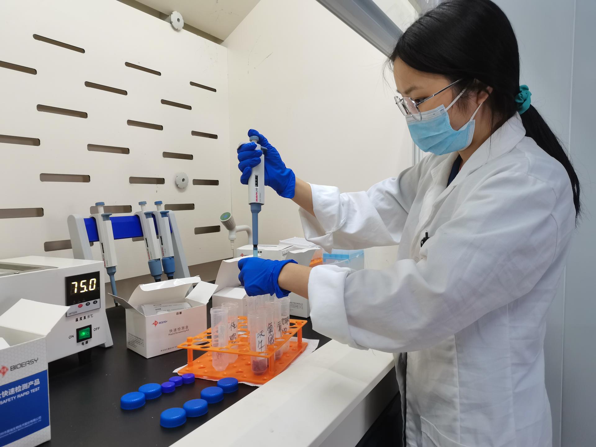 隆安分公司再入庫前對每批次食材進行檢測