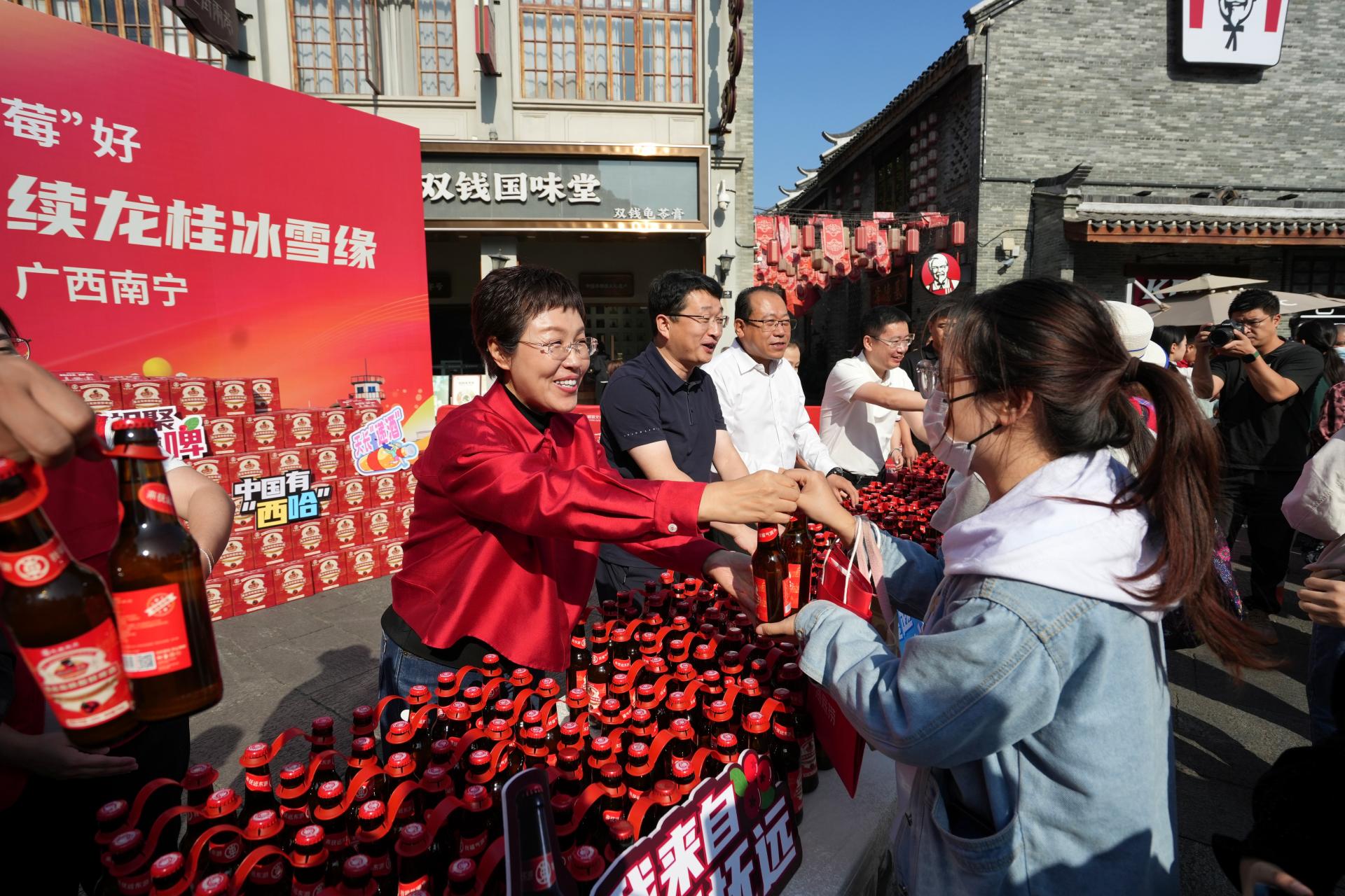 本次活動黑龍江安排了具有特色風(fēng)味的蔓越莓啤酒在南寧文旅集團(tuán)旗下文旅項(xiàng)目發(fā)放,南寧文旅集團(tuán)通過迅速整合集團(tuán)內(nèi)資源,結(jié)合各項(xiàng)目公司自身優(yōu)勢開展定制活動,以蔓越莓啤酒發(fā)放活動再造“南北CP”文旅新熱點(diǎn)。11月10日當(dāng)天,邕州古城·三街兩巷與廣西體育中心的活動現(xiàn)場人頭攢動,市民們熱情高漲,有序排隊(duì),只為親手接過這份來自遠(yuǎn)方的醇香禮物。這場跨越千里的文化盛宴,在廣西南寧絢爛上演,不僅為南寧市民的味蕾帶來了驚喜,更開啟了佳木斯與南寧兩地文化旅游深度交流合作的第二篇章。