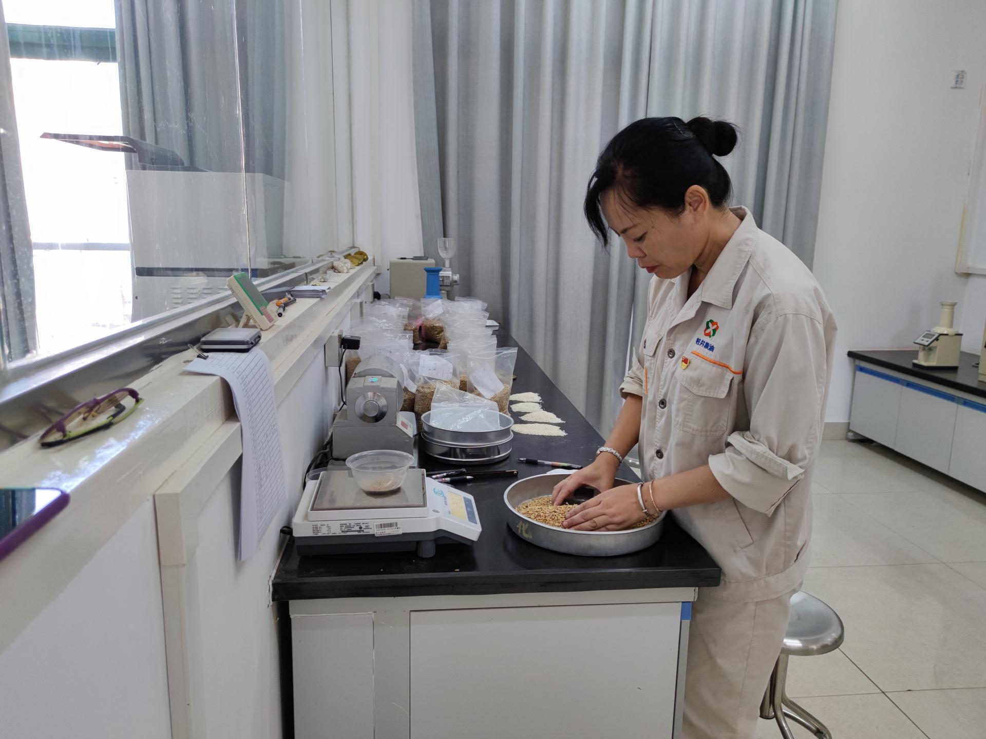 五象糧庫保管員檢查入庫稻谷品質(zhì)