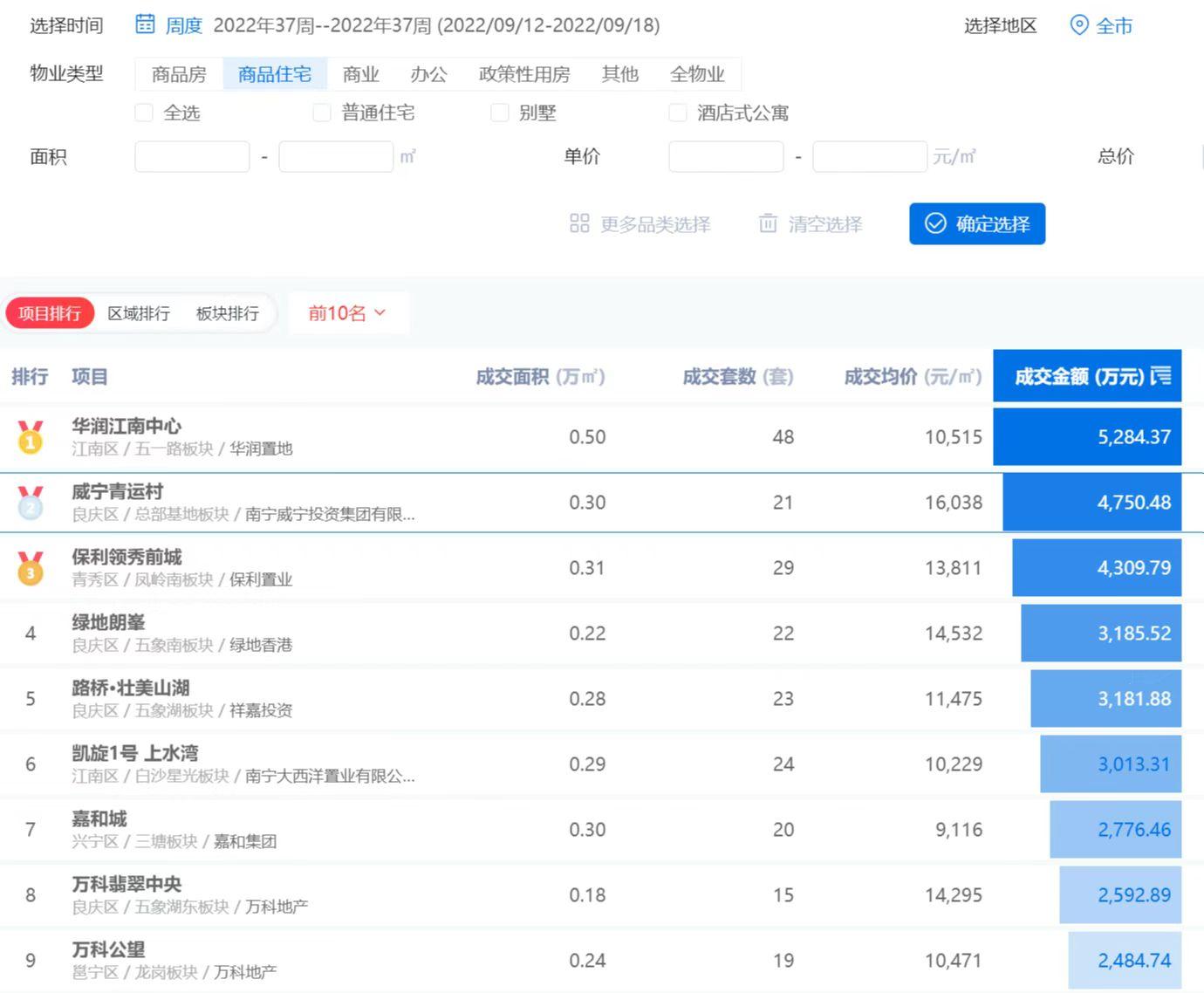 “金九銀十”是樓市傳統(tǒng)旺季。近期,南寧樓市出現(xiàn)了商品房備案成交面積同比降幅收窄、環(huán)比上漲的向好跡象。威寧青運村項目抓住有利時機,積極開展促銷工作,經(jīng)過全體銷售人員的努力,在2022年第37周的銷售成績斐然,獲得了南寧市第二名的好成績。