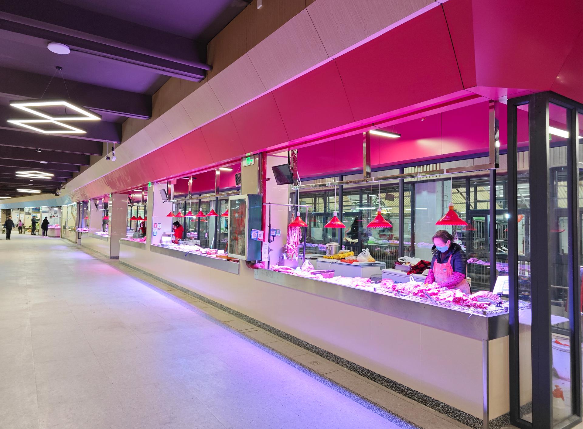 相比傳統(tǒng)市場(chǎng),4個(gè)試點(diǎn)改造市場(chǎng)實(shí)現(xiàn)了從硬件到軟件到服務(wù)到智能化的全新蛻變,為了徹底解決以往日常管理中出現(xiàn)的“老大難”問(wèn)題,在升級(jí)改造過(guò)程中,市場(chǎng)案臺(tái)創(chuàng)新采用不銹鋼格柵提升“三防”設(shè)施等級(jí)和排水能力,在美觀大方、堅(jiān)固耐用的同時(shí)又便于清潔,活禽行采用鋁合金玻璃墻并做到“三區(qū)分離”,有效隔絕氣味及細(xì)菌病毒,并配備高科技的智能掃拖一體機(jī)對(duì)市場(chǎng)進(jìn)行全天候消殺保潔,得到廣大經(jīng)營(yíng)戶的一致夸贊與認(rèn)可。同時(shí),飛鳳市場(chǎng)、星湖市場(chǎng)及那元果菜市場(chǎng)地板選用緊跟時(shí)下潮流的“高級(jí)灰”色系,與顏色各異的精致吊楣相得益彰,更顯檔次。市場(chǎng)內(nèi)電子大屏實(shí)時(shí)動(dòng)態(tài)滾動(dòng)展示的創(chuàng)城創(chuàng)衛(wèi)、健康中國(guó)、社會(huì)主義核心價(jià)值觀、講文明樹新風(fēng)和生活垃圾分類等公益宣傳,營(yíng)造安全、健康、文明的購(gòu)物環(huán)境。