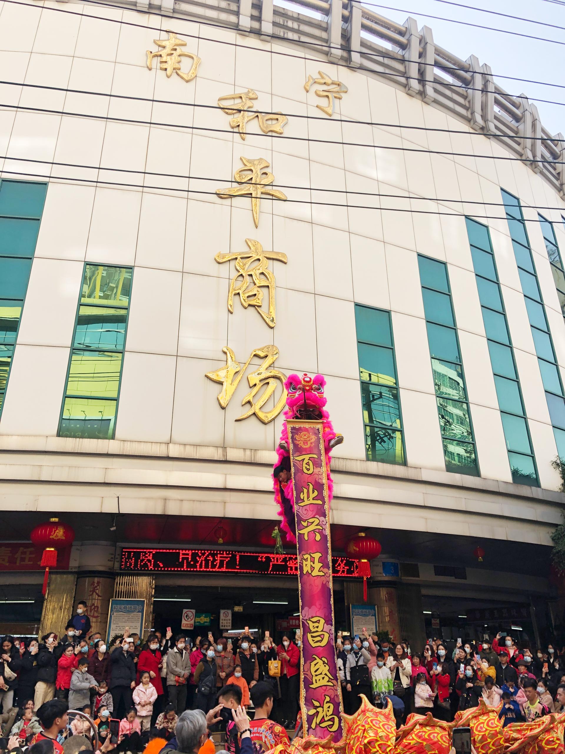 2023年正月初八,威寧市場公司所屬和平商場、南寧交易場、水街市場、津頭市場、五里亭農(nóng)貿(mào)市場等國有商場、市場分別開展了熱熱鬧鬧的“金龍醒獅賀新年”迎新開年活動(dòng)。中國傳統(tǒng)民俗“醒獅賀歲”,寓意“新年發(fā)發(fā)發(fā)”,舞獅慶賀“開工大吉”!