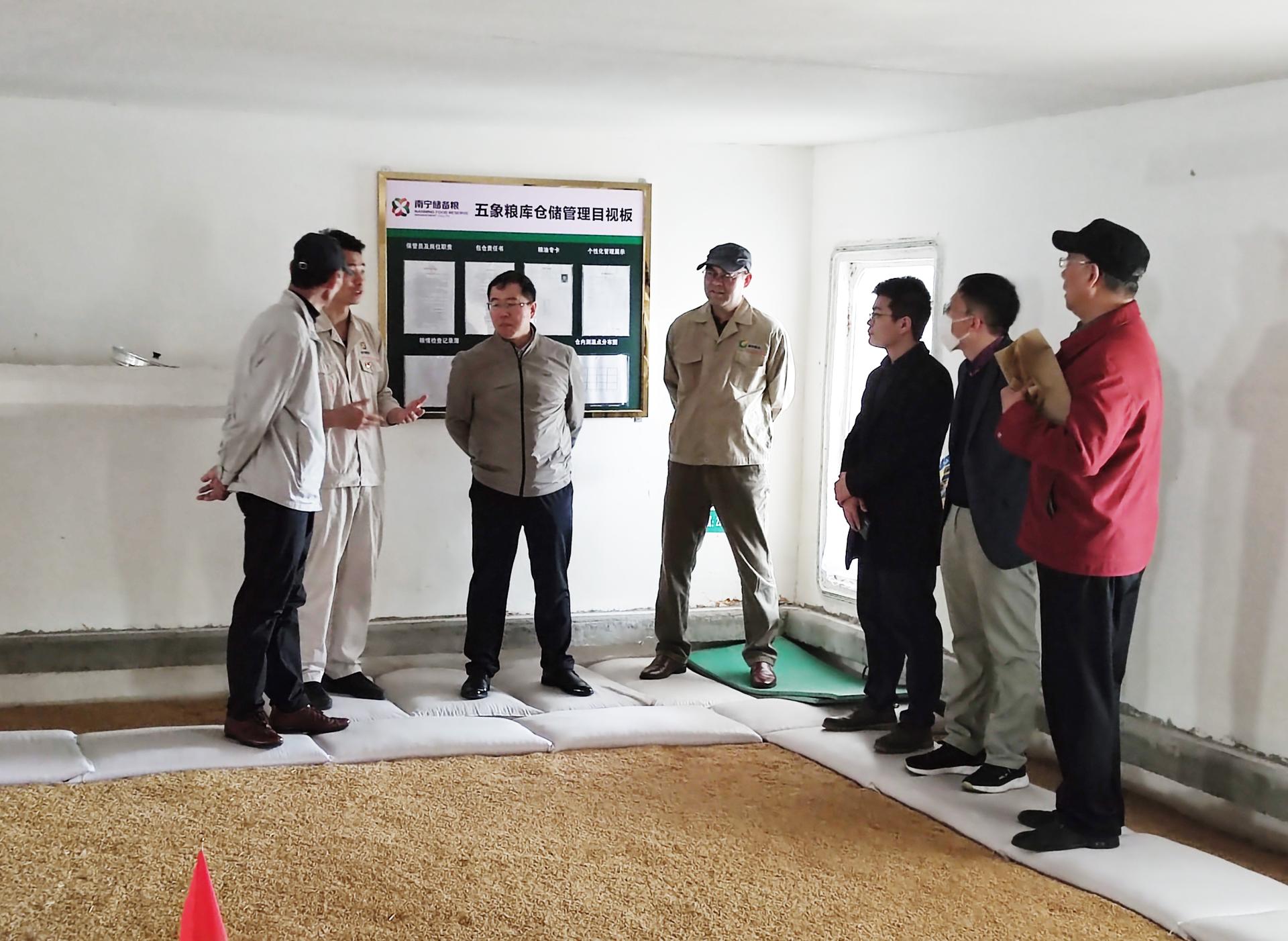 考察組一行實地考察了儲備糧公司五象糧庫、沙井糧庫成品倉、原糧倉儲備糧庫存情況及倉房和倉儲設(shè)施設(shè)備情況,認真聽取儲備糧庫存品種、輪換出入庫管理、倉儲保管技術(shù)應(yīng)用以及應(yīng)急保供能力情況,與公司相關(guān)部門負責(zé)人圍繞糧倉機械通風(fēng)、控溫控濕技術(shù)和節(jié)能降耗儲糧措施應(yīng)用等方面展開深入交流,并對儲糧技術(shù)創(chuàng)新與應(yīng)用、現(xiàn)代化倉房改造和提升、儲糧機械設(shè)施設(shè)備等方面提出專業(yè)性建議。