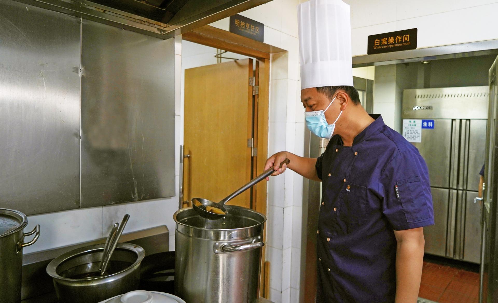 邕城涼茶第三代傳承人黃沖在煮制涼茶