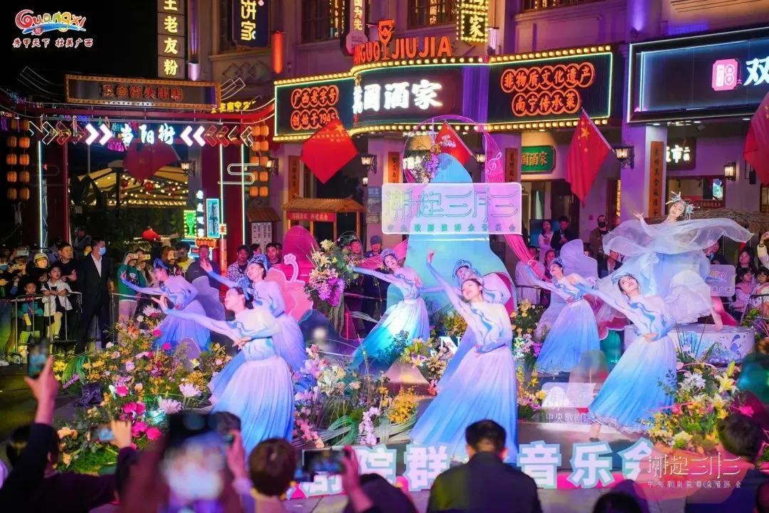 歌劇悠揚(yáng)、民歌嘹亮,一場歌劇藝術(shù)與傳統(tǒng)音樂的碰撞在邕州古城·三街兩巷激情上演。2024年4月6日晚,由中央歌劇院薛玉強(qiáng)、王霄云等多位國家一級演員和廣西本土藝術(shù)家?guī)淼摹俺逼鹑氯敝醒敫鑴≡喝罕娨魳窌阽咧莨懦恰と謨上餁v史文化街區(qū)舉行,為市民游客獻(xiàn)上了一場別開生面的街頭音樂演出。活動由廣西壯族自治區(qū)文化和旅游廳、中央歌劇院聯(lián)合主辦,南寧市文化廣電和旅游局承辦。