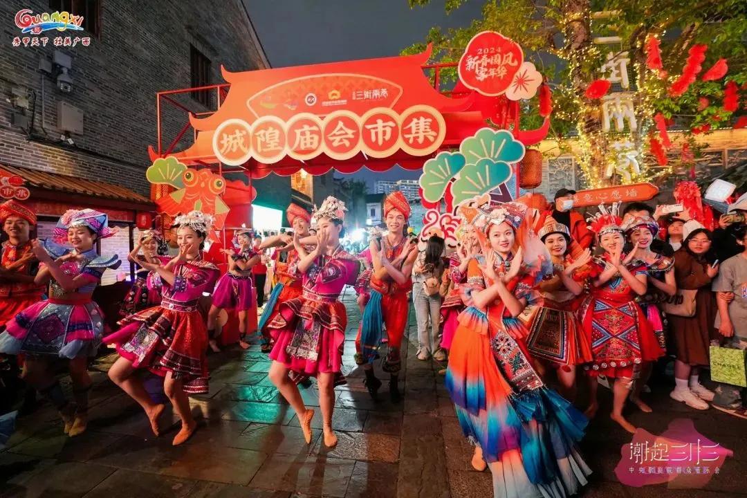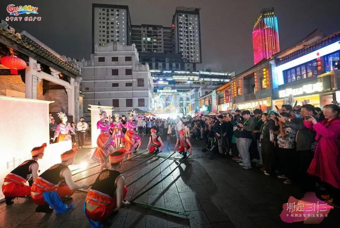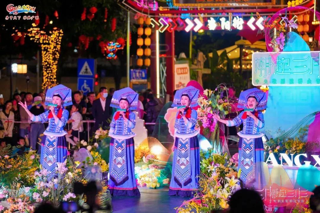 作為廣西“三月三”系列群眾文化活動之一,音樂會現(xiàn)場還設(shè)置了“山歌迎客”“民歌新唱”“花式竹竿舞”“科目三舞蹈”“廣西有戲”等豐富的民俗文化展示體驗(yàn)活動。
