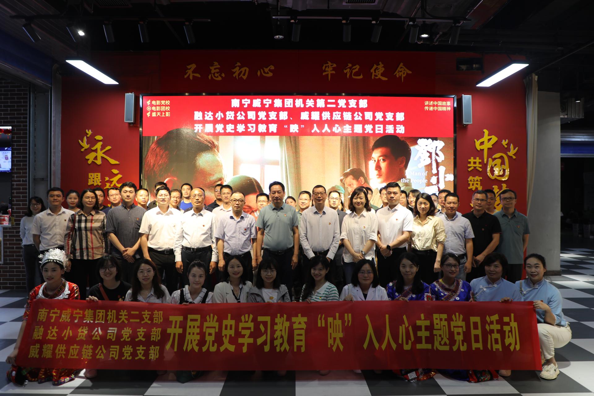 為進(jìn)一步豐富黨建聯(lián)合方式、創(chuàng)新黨建工作載體和實(shí)質(zhì)內(nèi)容,不斷鞏固拓展黨史學(xué)習(xí)教育成果,2022年5月19日,南寧威寧集團(tuán)機(jī)關(guān)第二黨支部、融達(dá)小貸公司黨支部、威耀供應(yīng)鏈公司黨支部在兩新領(lǐng)域電影黨校暨盛天上影黨建教育基地聯(lián)合開(kāi)展黨史學(xué)習(xí)教育“映”入人心主題活動(dòng)。