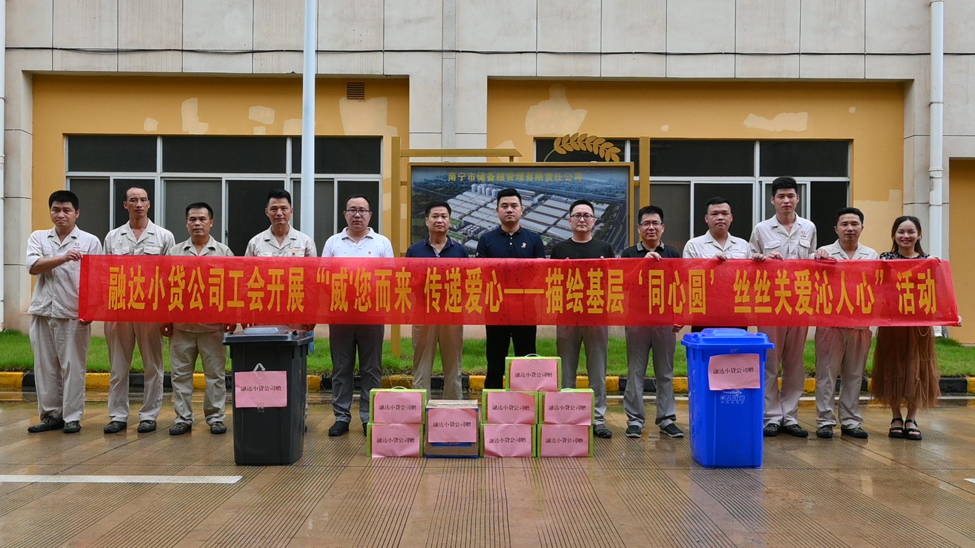 活動現(xiàn)場,融達小貸公司黨支部還聯(lián)合公司工會開展“描繪基層‘同心圓’,絲絲關(guān)愛沁人心”活動,慰問儲備糧公司五象糧庫的一線工人、退伍軍人代表,發(fā)放一批清涼飲品、防疫用品及垃圾分類物資等慰問品,進一步強化了工會之間的合作交流,也營造了擁軍優(yōu)屬、擁政愛民的良好社會氛圍,開啟了深化黨建共建工作新篇章。