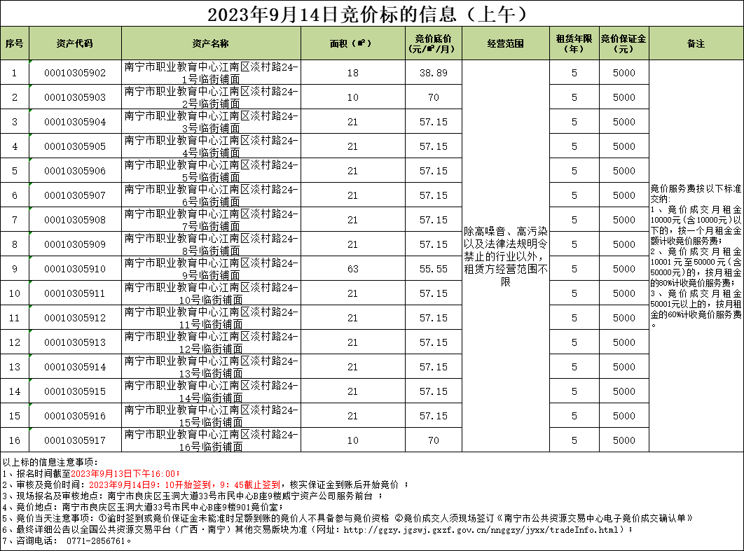2023年9月14日競(jìng)價(jià)標(biāo)的信息