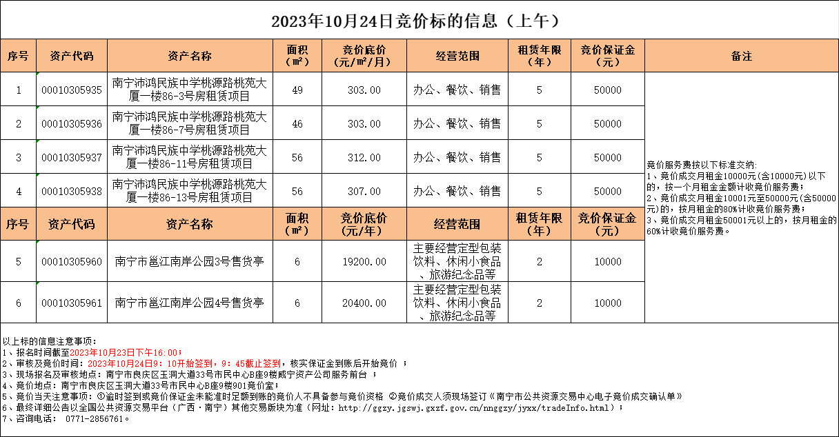 2023年10月24日競(jìng)價(jià)標(biāo)的信息
