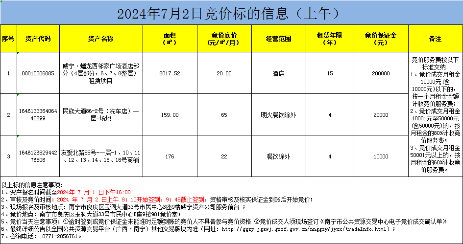 2024年7月2日競(jìng)價(jià)標(biāo)的信息(現(xiàn)場(chǎng)競(jìng)價(jià))