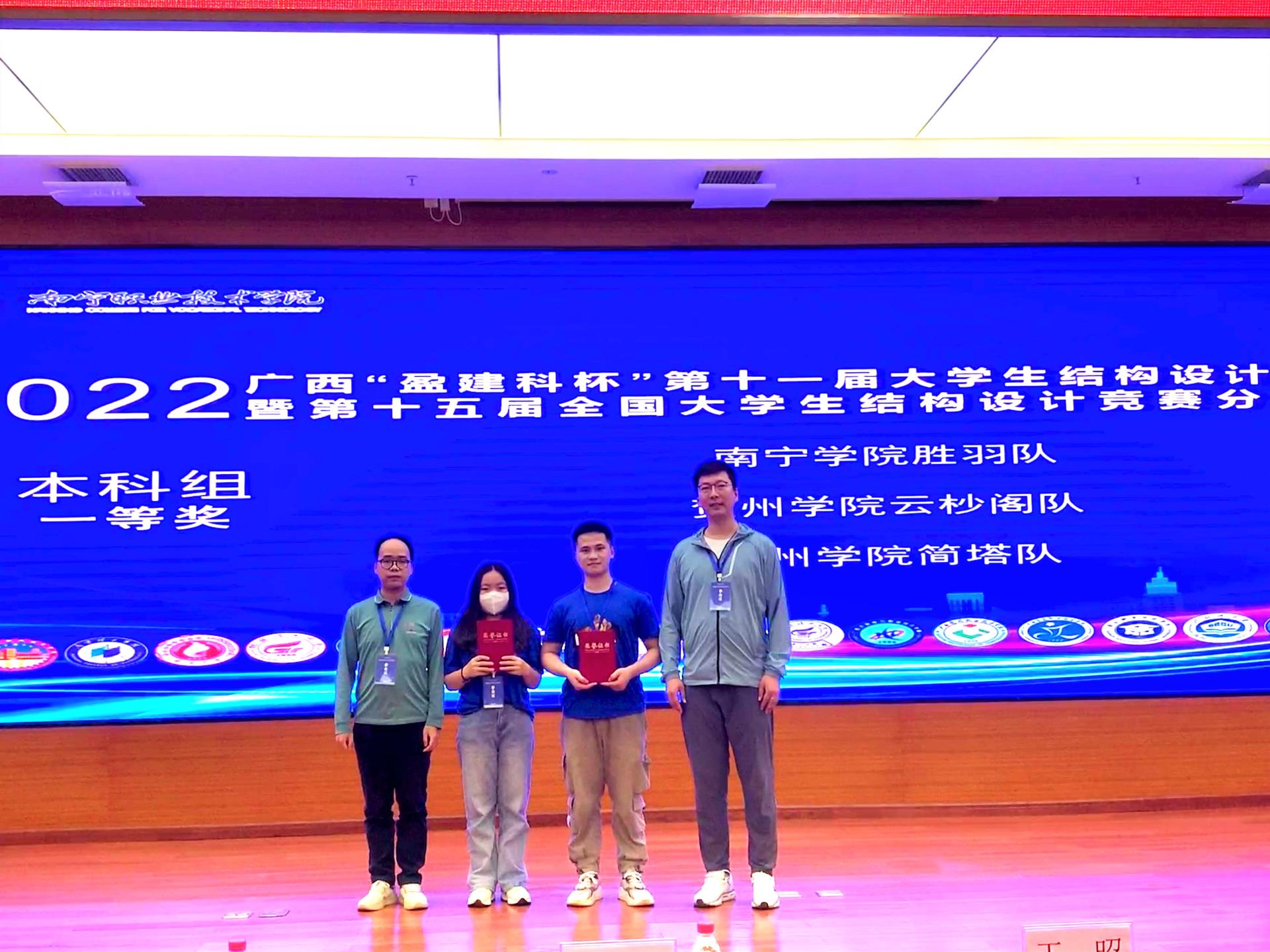 2022年5月21日,由廣西住建廳、廣西教育廳聯(lián)合主辦的廣西第十一屆大學(xué)生結(jié)構(gòu)設(shè)計(jì)競(jìng)賽暨第十五屆全國(guó)大學(xué)生結(jié)構(gòu)設(shè)計(jì)競(jìng)賽廣西分區(qū)賽在南寧職業(yè)技術(shù)學(xué)院落下帷幕,我校收獲頗豐!大學(xué)生結(jié)構(gòu)設(shè)計(jì)競(jìng)賽是教育部認(rèn)可的一類學(xué)科競(jìng)賽,屬于土木工程專業(yè)規(guī)模最大、參賽隊(duì)伍最多,含金量最高的專業(yè)賽事,被譽(yù)為“土木工程皇冠上最璀璨的明珠”。本次比賽有廣西大學(xué)、桂林理工大學(xué)、廣...
